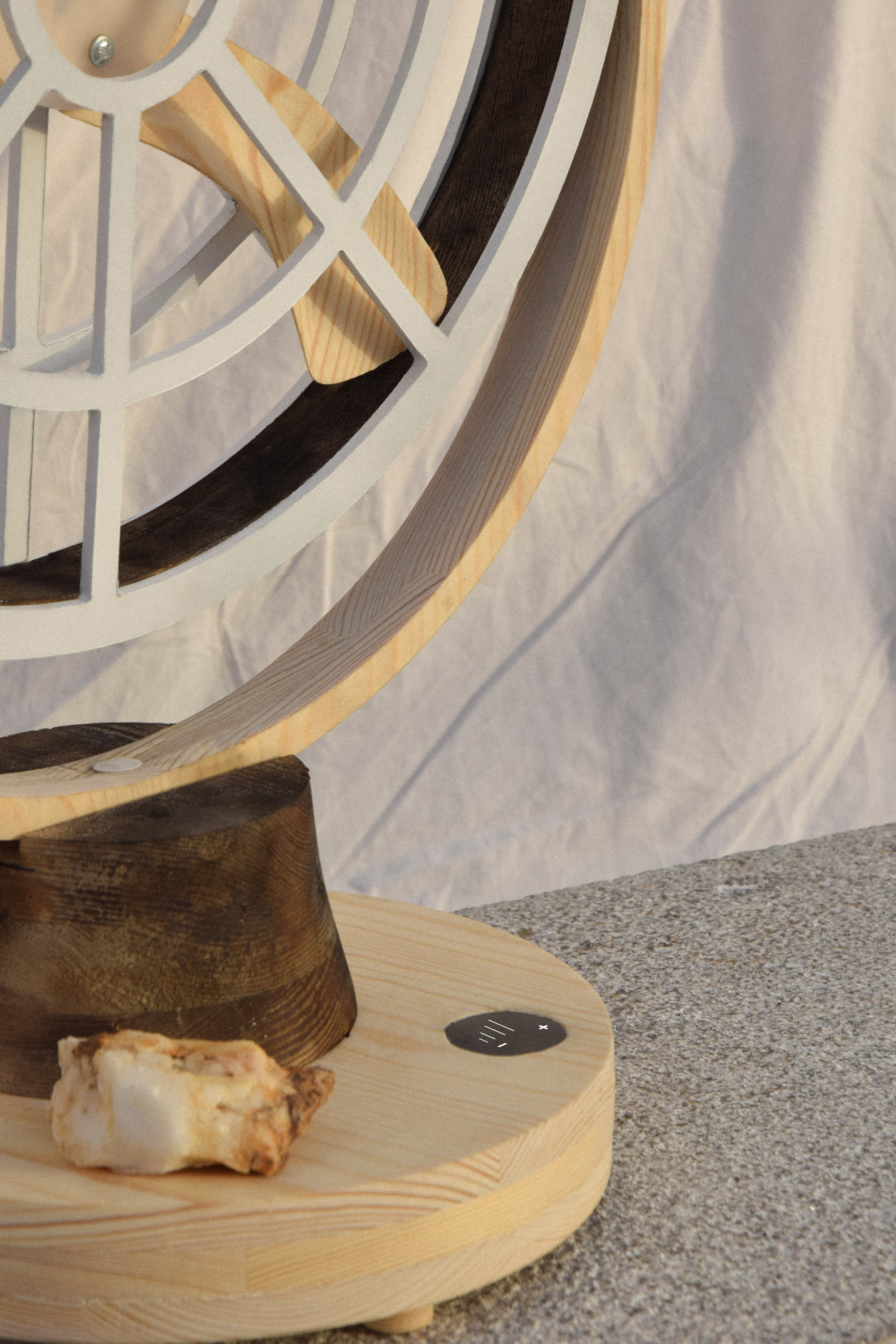 ︎ Frugal, minimal, and essential where key words of my sketching process. While sketching I realised that I should avoid sharp angles and undustrial shapes and stick to the essence, a circle. This shape was carried over the product range: a fan with a blowing interface, a nomadic stove and a lamp with a friction generated activation.
