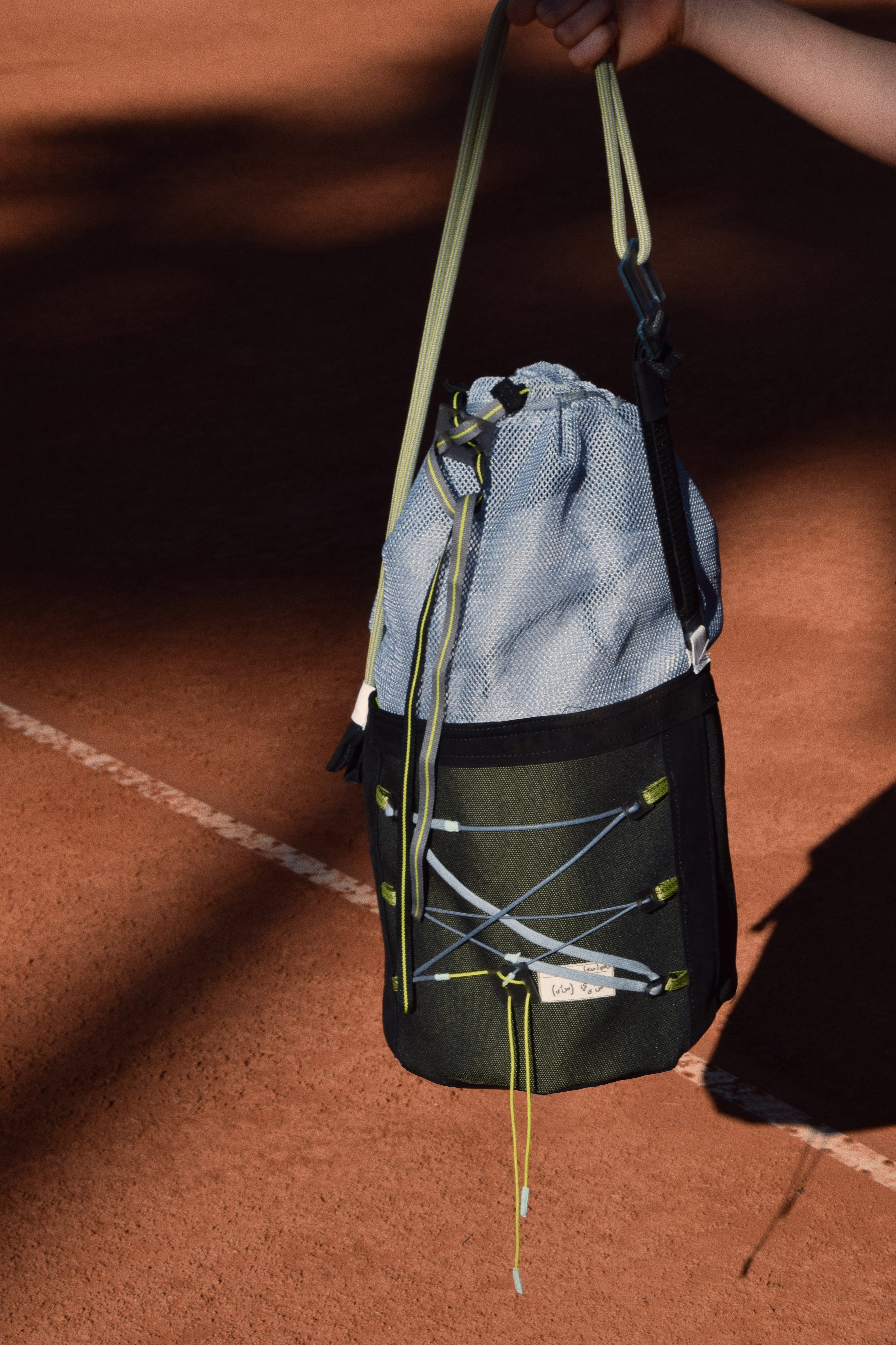 The sport bag- inspired by my swimming mesh bag. It’s versatile; can expand if needed and be worn as a bagpack or a shoulder bag.